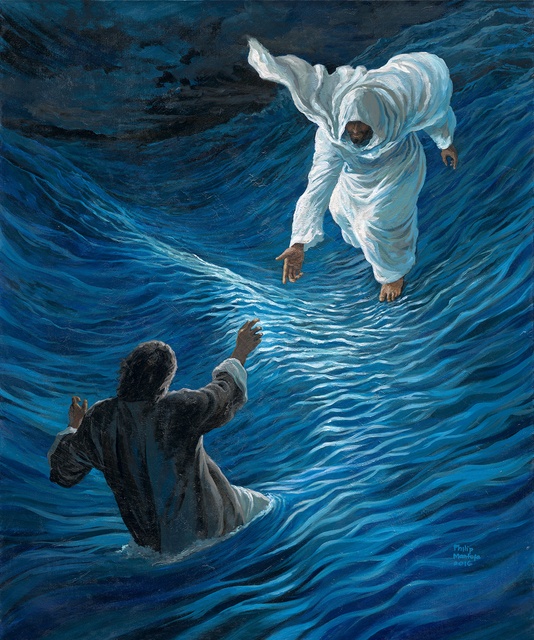 “耶稣说:你来吧。彼得就从船上下去,在水面上走,要到耶稣那里去;只因见风甚大,就害怕,将要沉下去,便喊着说:主啊,救我!”(太14:29-30)