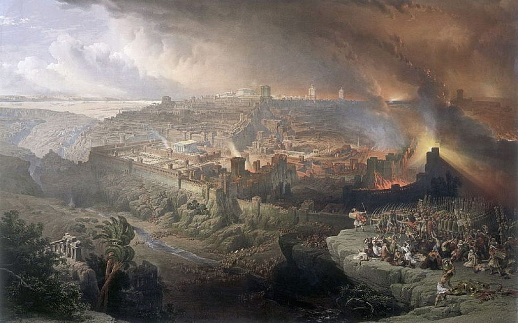 耶稣警告门徒,当他们看到逼迫的情况来临就要警觉准备,因为那个灾难将是非常悲惨的。当时亚洲欧洲的教会都受到影响,基督徒四处分散,也让福音传到更远的地方。主后70年罗马皇帝发兵包围耶路撒冷。经过几个月的围困,城里断粮缺水,大多数居民不是饿死就是病死,当大军攻进城内,城里剩下九万多犹太人,全部成为俘虏。罗马军队把耶路撒冷城摧毁,只留下西边一道长48米高18米的城墙,就是现在耶路撒冷的哭墙。圣殿虽是希律王所建,但仍然被夷为平地,正如耶稣的预言,圣殿没有一块石头留在石头上,不被拆毁。