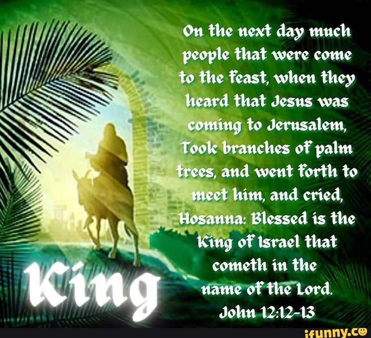 “第二天,有许多上来过节的人,听见耶稣将到耶路撒冷,就拿着棕树枝,出去迎接祂。”(约12:12-13)