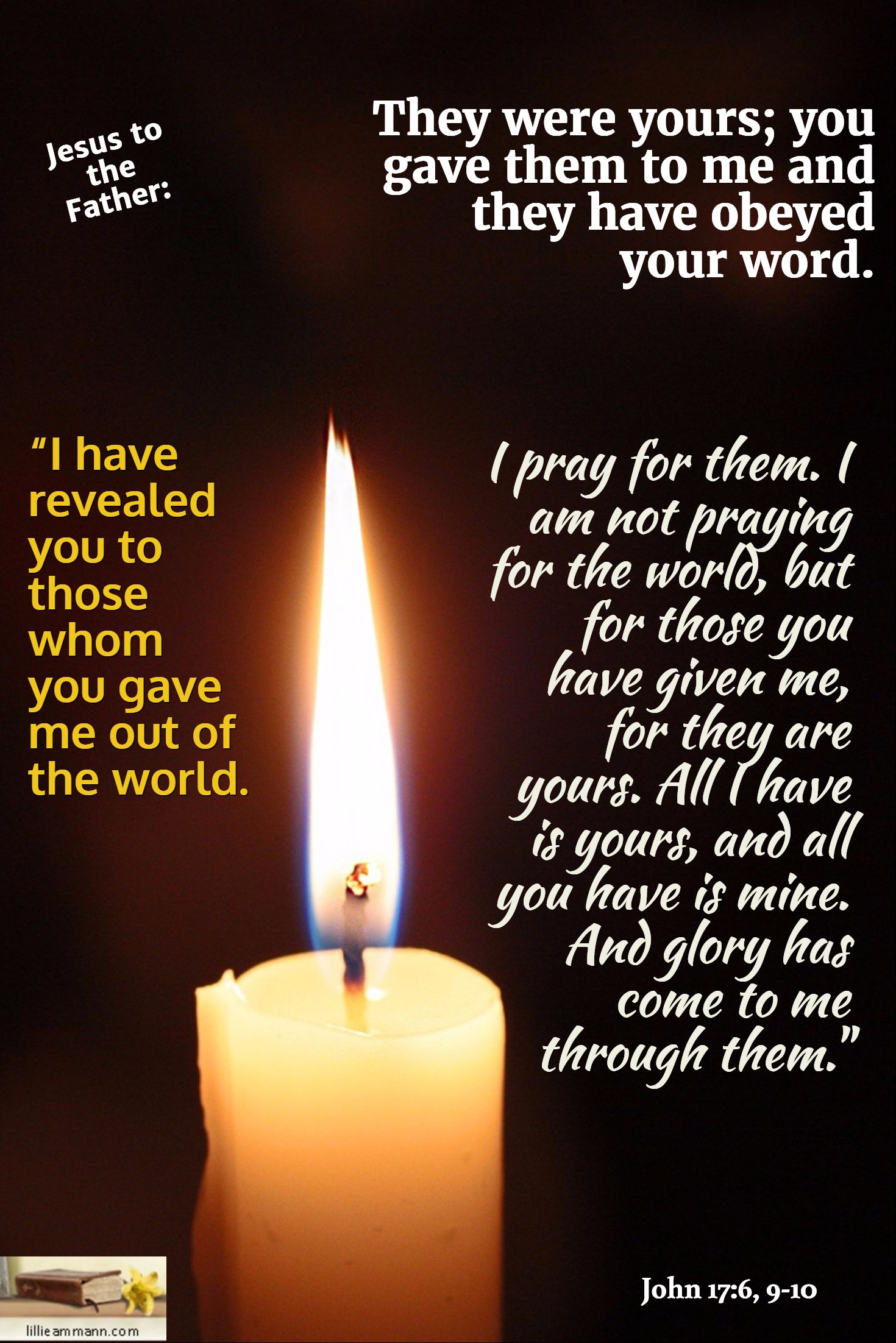 “我为他们祈求。不为世人祈求,却为你所赐给我的人祈求,因他们本是你的。”(约17:9)
