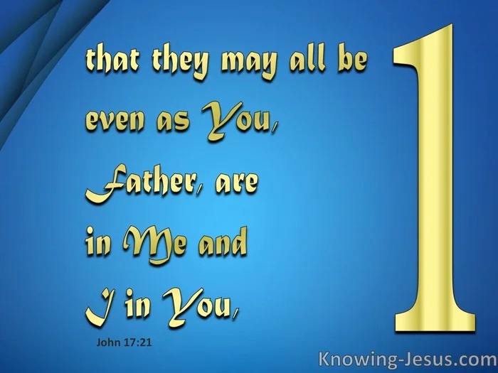 “使他们都合而为一。正如你父在我里面,我在你里面,使他们也在我们里面。叫世人可以信你差了我来。”(约17:21)