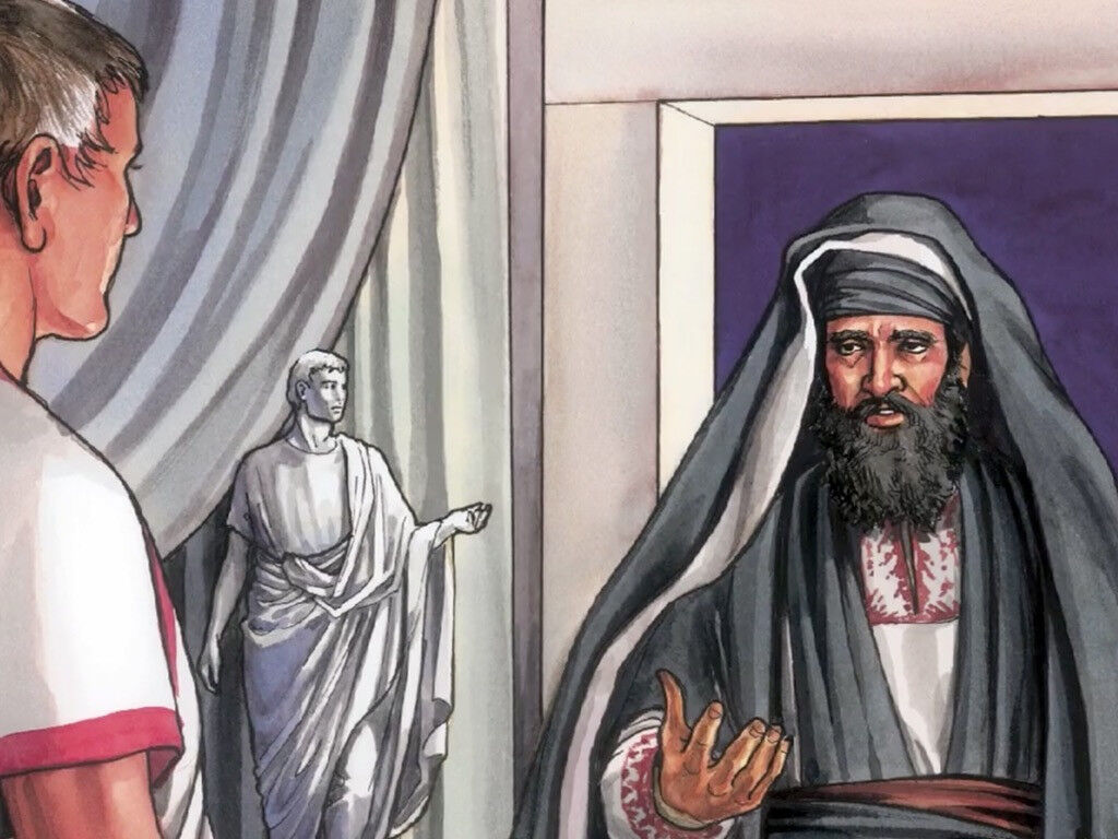 当主耶稣被钉死在十字架时,亚利马太的约瑟求彼拉多的允准,将主耶稣的身体安葬。