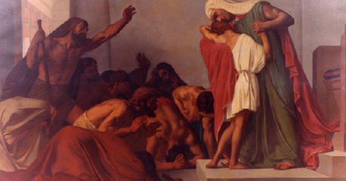 创世记45章记载一个亲人相认的动人场景,相隔二十二年之后,约瑟与当年出卖他的弟兄们相认:“约瑟在左右站着的人面前情不自禁,吩咐一声说,‘人都要离开我出去。’…他就放声大哭,埃及人和法老家中的人都听见了。约瑟对他弟兄们说,‘我是约瑟…’”(创45:1-3)