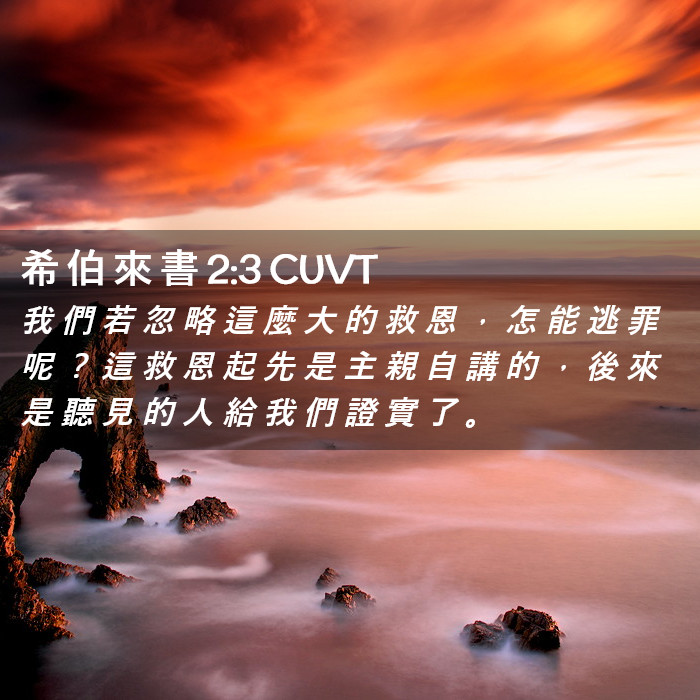 “我们若忽略这么大的救恩,怎能逃罪呢?这救恩起先是主亲自讲的,后来是听见的人给我们证实了。神又按自己的旨意,用神迹、奇事和百般的异能,并圣灵的恩赐,同他们作见证。” (2:3-4)