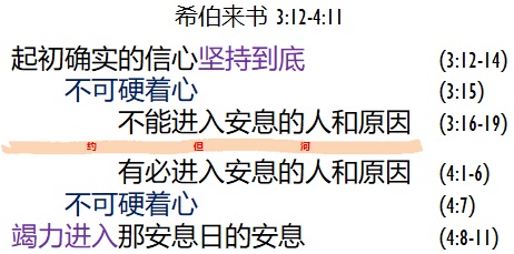 希伯来书第三、四章从摩西到基督,从神的百姓到神的教会,从约但河那边到河这边,从出埃及到以色列国到第一世纪到今天,很清楚地把进入神安息的议题解释清楚,让所有相信的人,拥有进入安息应许的人都要谨慎,不可再硬着心,要听从神的话,务必竭力进入那安息日的安息。