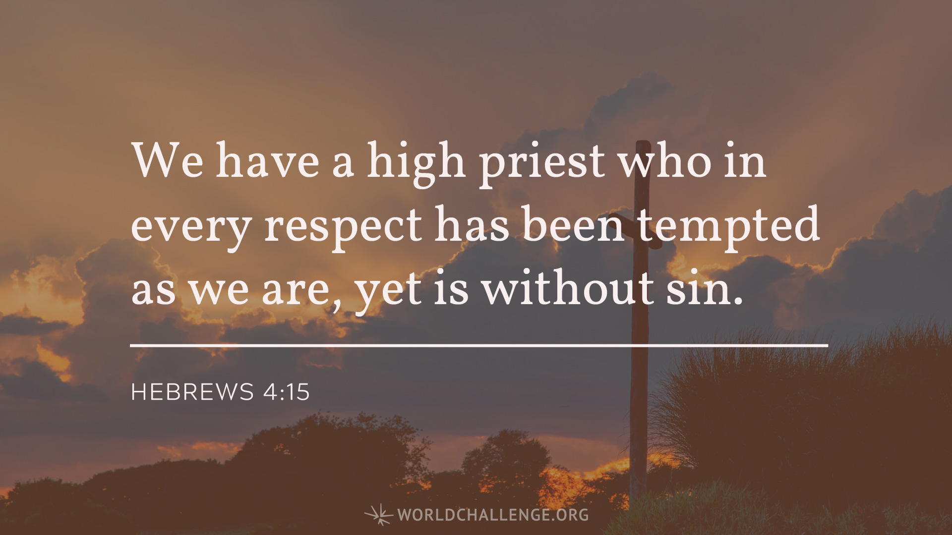 “我们既然有一位已经升入高天尊荣的大祭司,就是神的儿子耶稣,便当持定所承认的道。因我们的大祭司并非不能体恤我们的软弱。祂也曾凡事受过试探,与我们一样,只是祂没有犯罪。所以,我们只管坦然无惧的来到施恩的宝座前,为要得怜恤,蒙恩惠,作随时的帮助。”(希伯来书4:14-16)
