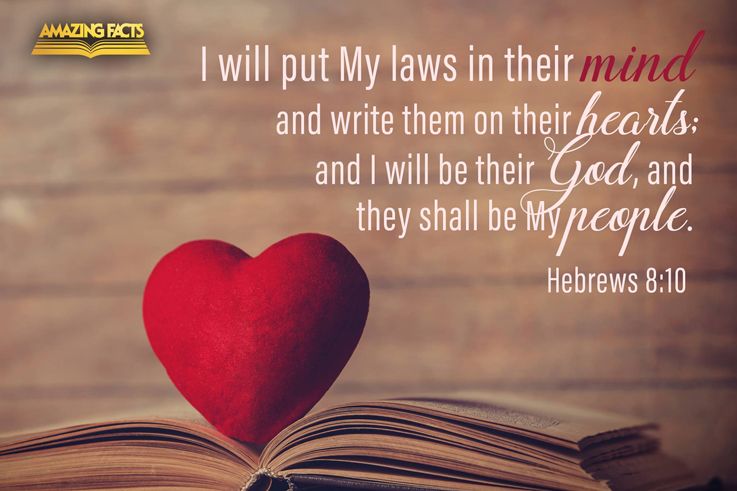 “主又说:那些日子以后,我与以色列家所立的约乃是这样:我要将我的律法放在他们里面,写在他们心上;我要作他们的神;他们要作我的子民。”(8:10)