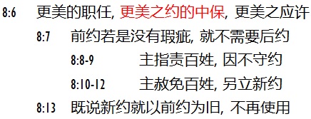 “如今耶稣所得的职任是更美的,正如祂作更美之约的中保;这约原是凭更美之应许立的。”(8:6)