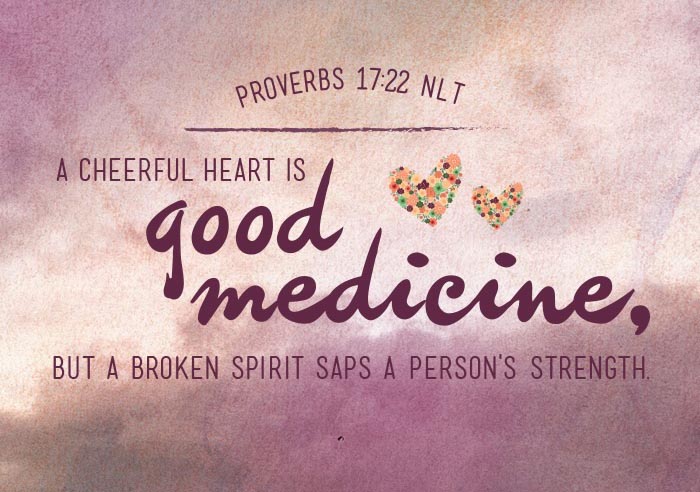 圣经说:喜乐的心乃是良药。(箴言 17:22)这喜乐是神所赐的,是世界不能夺去的。即使在极大的困难中,我仍能经历深层的属灵平安。人常以为我的生活必定顺遂,才会如此喜乐,但事实上,这完全是因为我选择相信神的应许:我们这至暂至轻的苦楚,要为我们成就极重无比永远的荣耀。(哥林多后书 4:17)