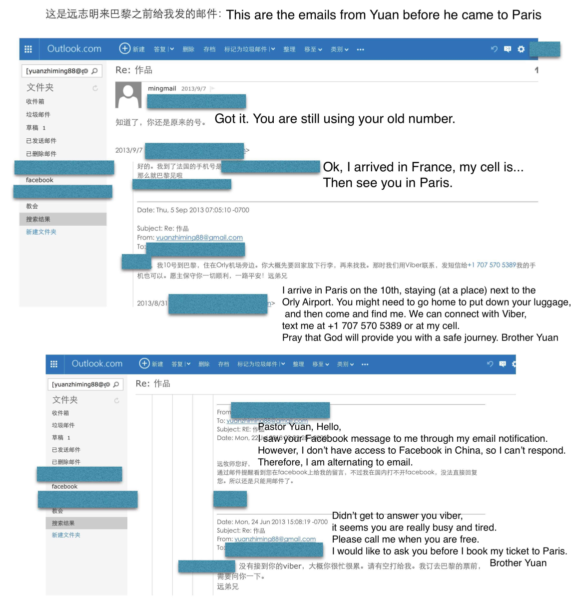 远牧师离开巴黎后的那天,给VC发了一条短信22。VC没有回复。几天后,远牧师将他们第一天见面时他在所住宾馆房间里为她拍摄的照片,通过电子邮件发送给了她23。大约一个月以后,VC又接到远牧师的一个电话。VC说,当时她没有认出那个电话是谁打来的,就接了电话。远牧师在电话另一端问她是不是还生他的气,为什么没有回复他先前发的短信。她说,他没有再提起实习的事,只是想知道她是不是还生他的气。VC记不清他们之间对话的细节了,但她仍然记得,她虽然对他的不端行为非常气愤,但不想表现得很无理,就在电话里告诉远牧师说她不生气。这些事发生以后,VC说,她对去神州(CSFCF)实习再也不感兴趣了。GF记得,VC对她说过,她曾经接到过远牧师的电话,但远牧师假装好像什么错事都没有做过一样,没有为他的行为道歉。