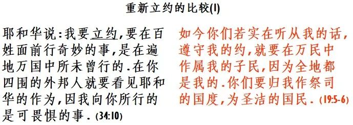 而这次神说,以色列人已经是神的百姓,神立约要在祂的百姓面前行奇妙的事,是从来没有发生过的,要让外邦人都看见神的作为,神要行出可畏惧的事。由此可见,神这次重新立约并没有改动上一次所说的内容,而是把更详细更清楚的规条颁布给摩西。