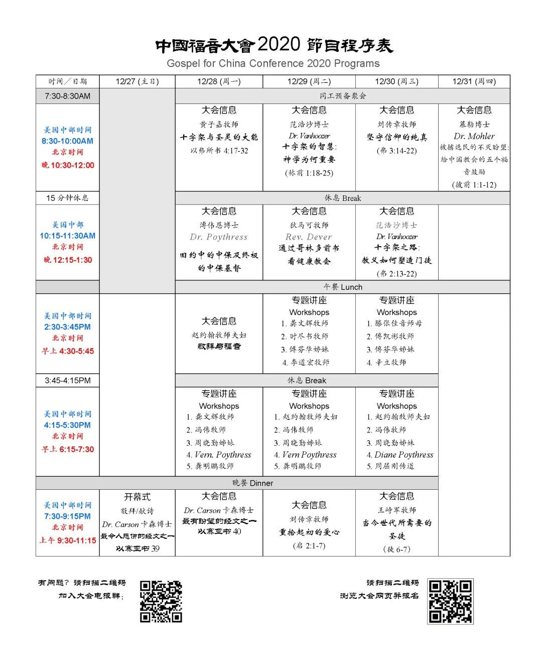 中国福音大会2020 专题时间表:/Upload/Files/GFCC 2020/GFCC2020 Workshops Chart.pdf