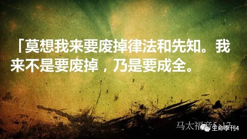 ——耶稣传的福音是律法的总结,并不是要推翻律法而是要成全律法